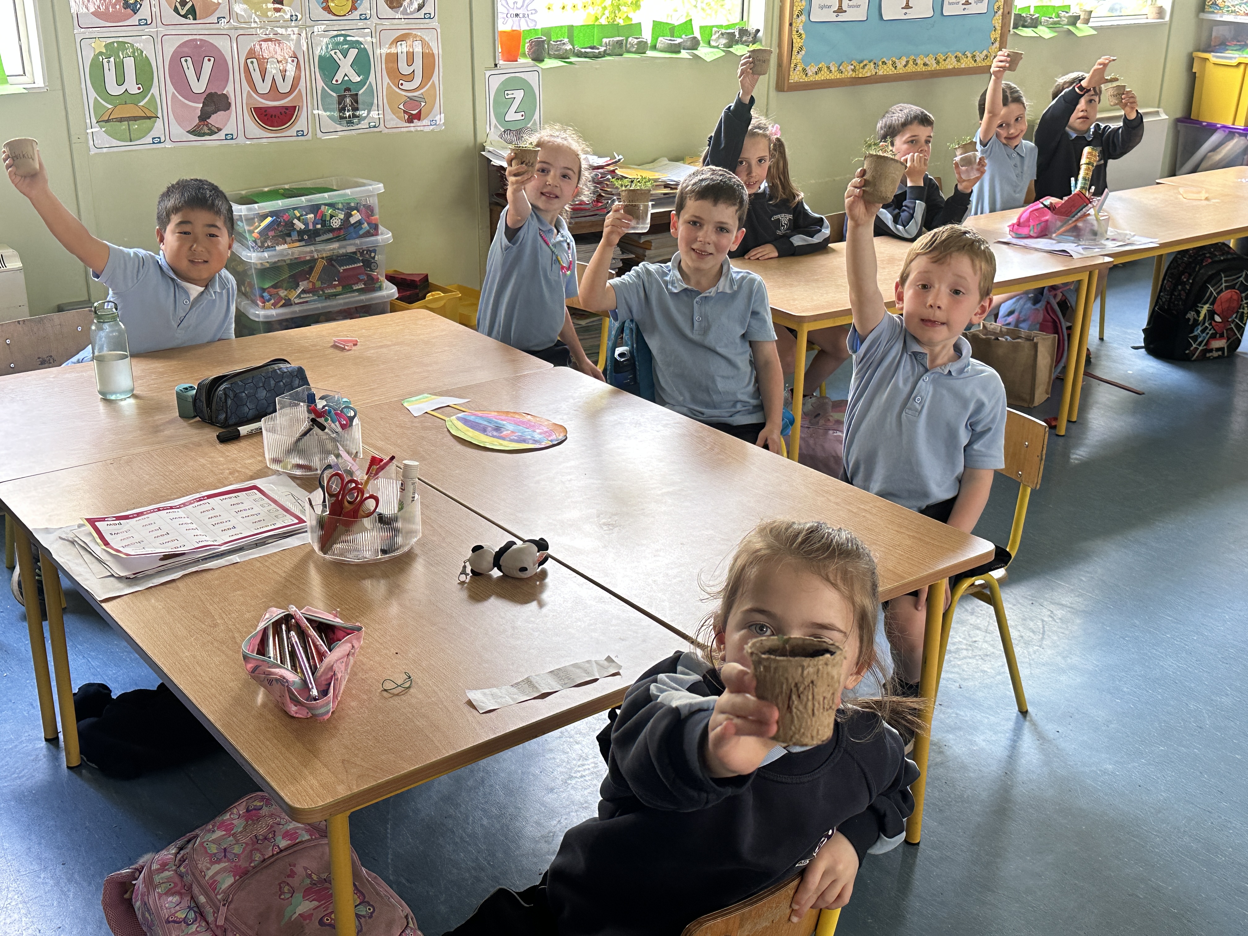 Our Senior Infants have been busy exploring floating and sinking in science, testing different objects to see what happens when they’re placed in water. In art, they’ve had lots of fun getting creative with clay, shaping their own mini masterpieces. They also enjoyed using bright colours and big brushes to paint the pinch pots.