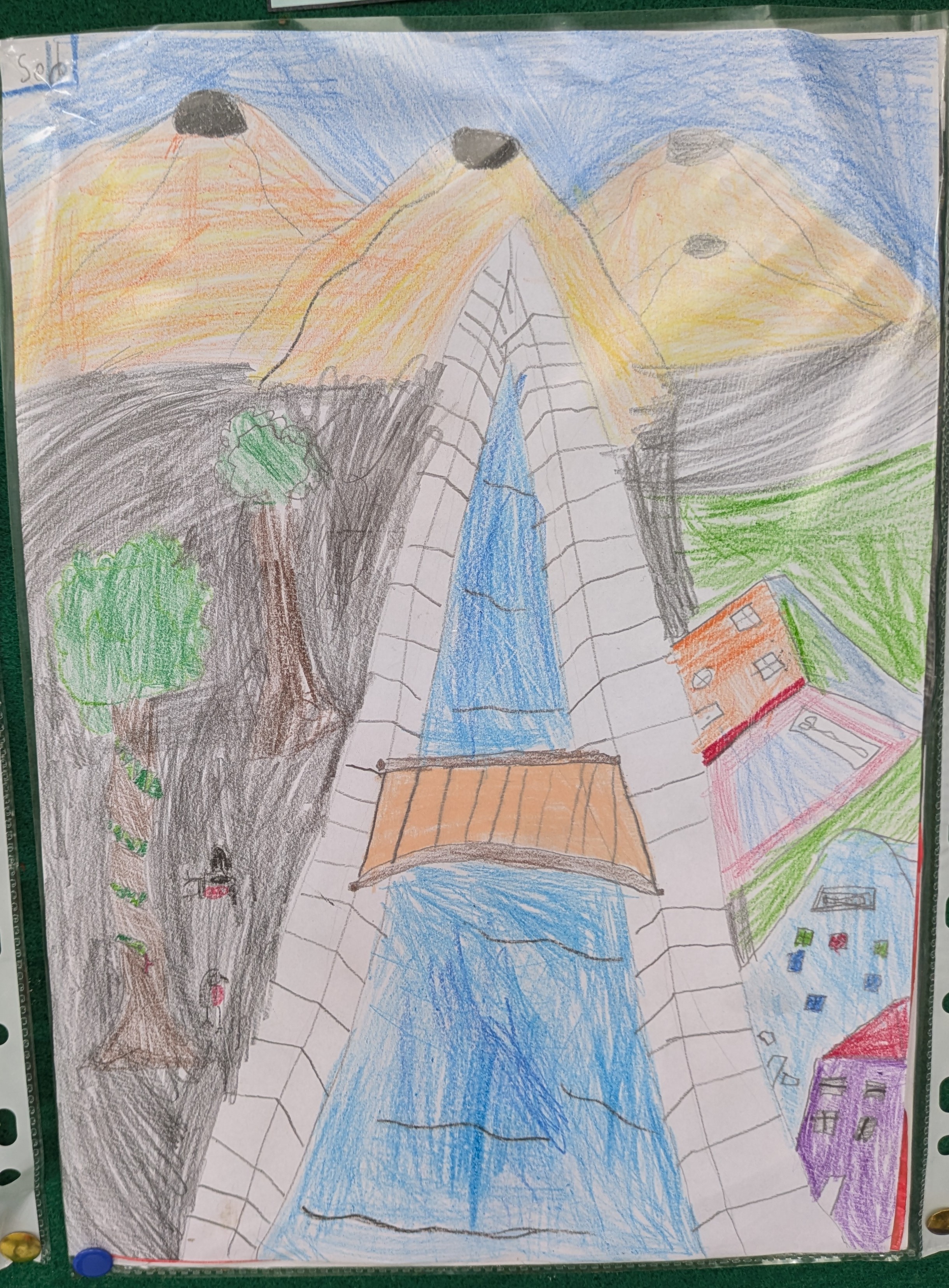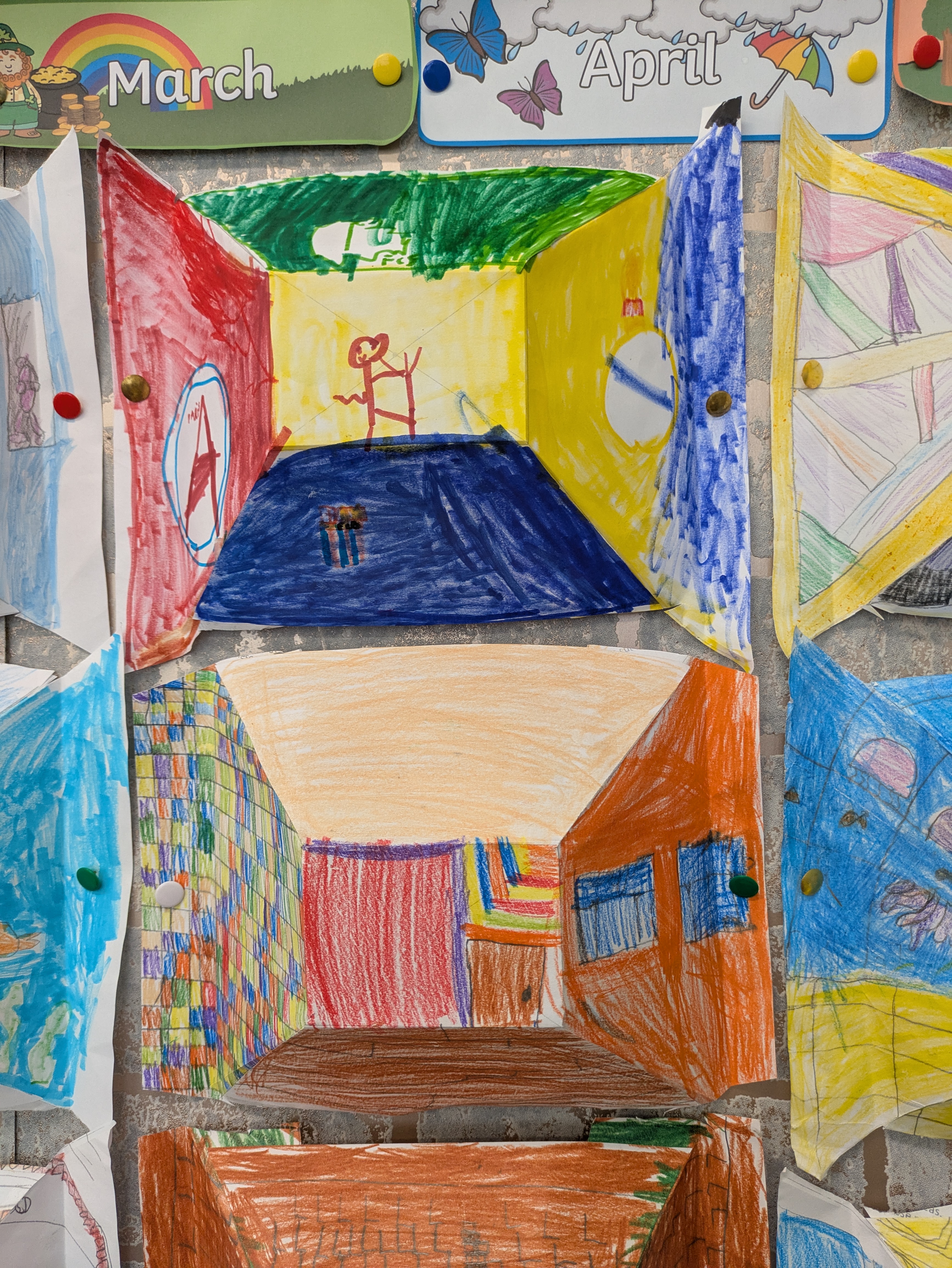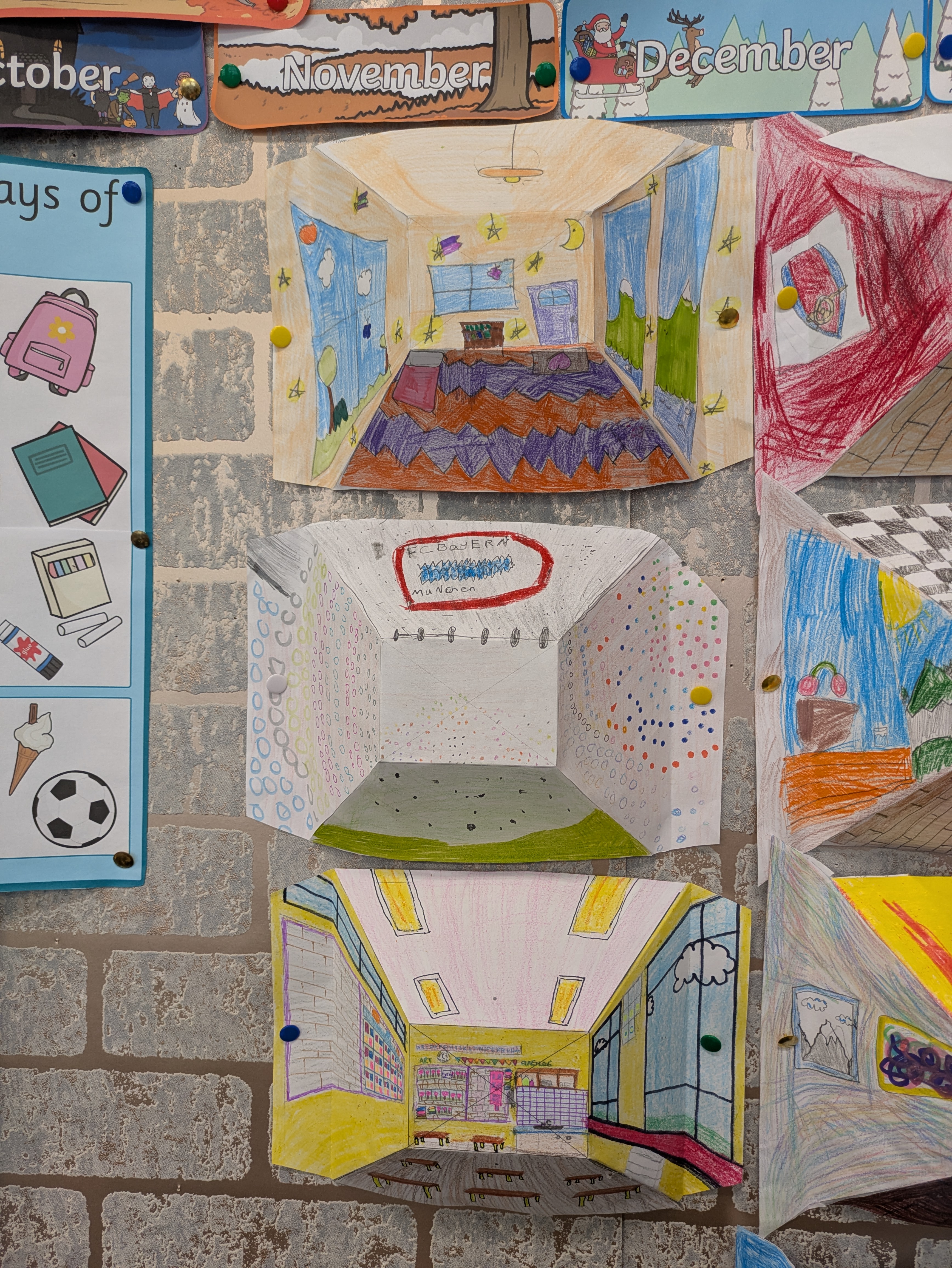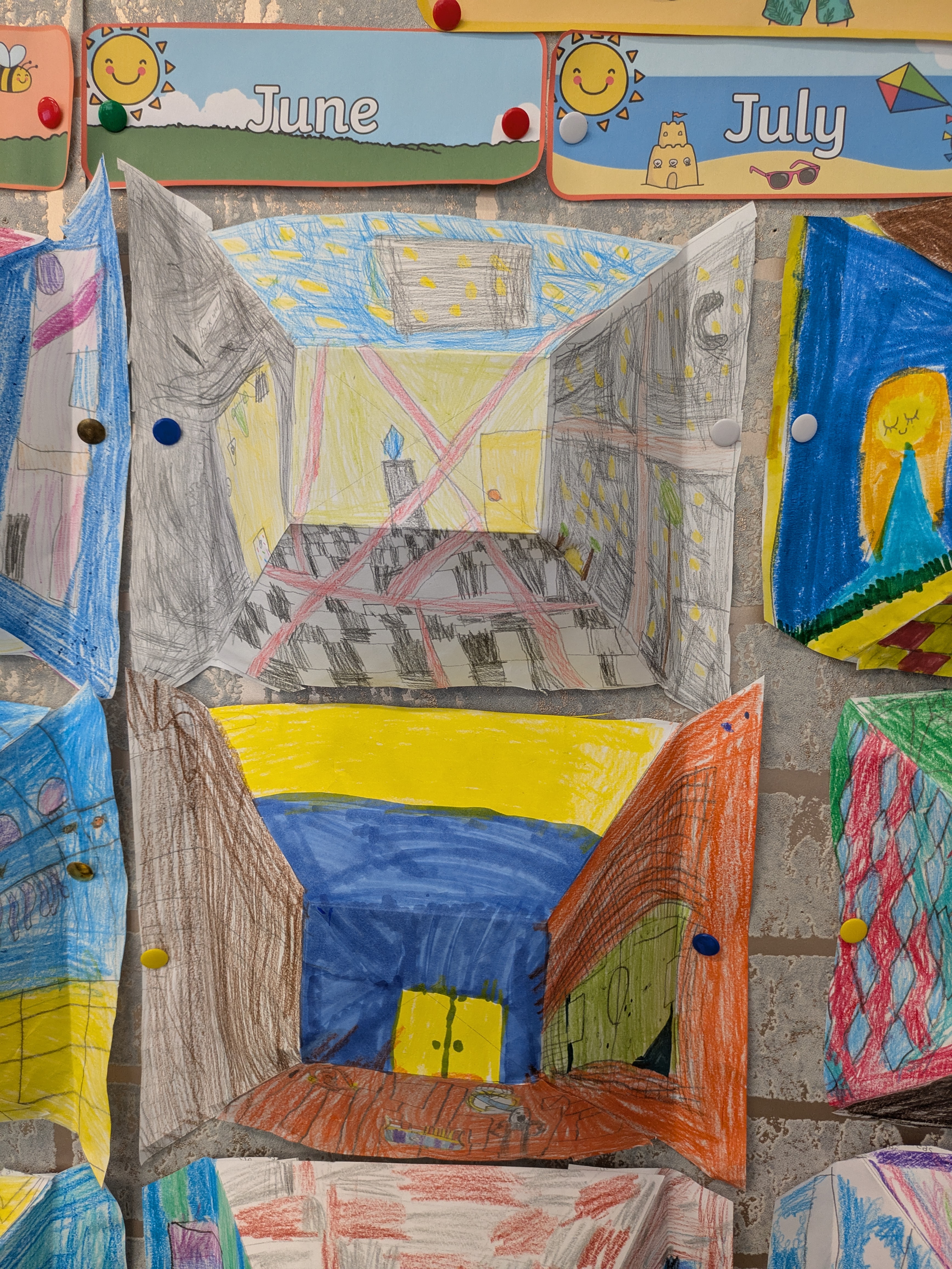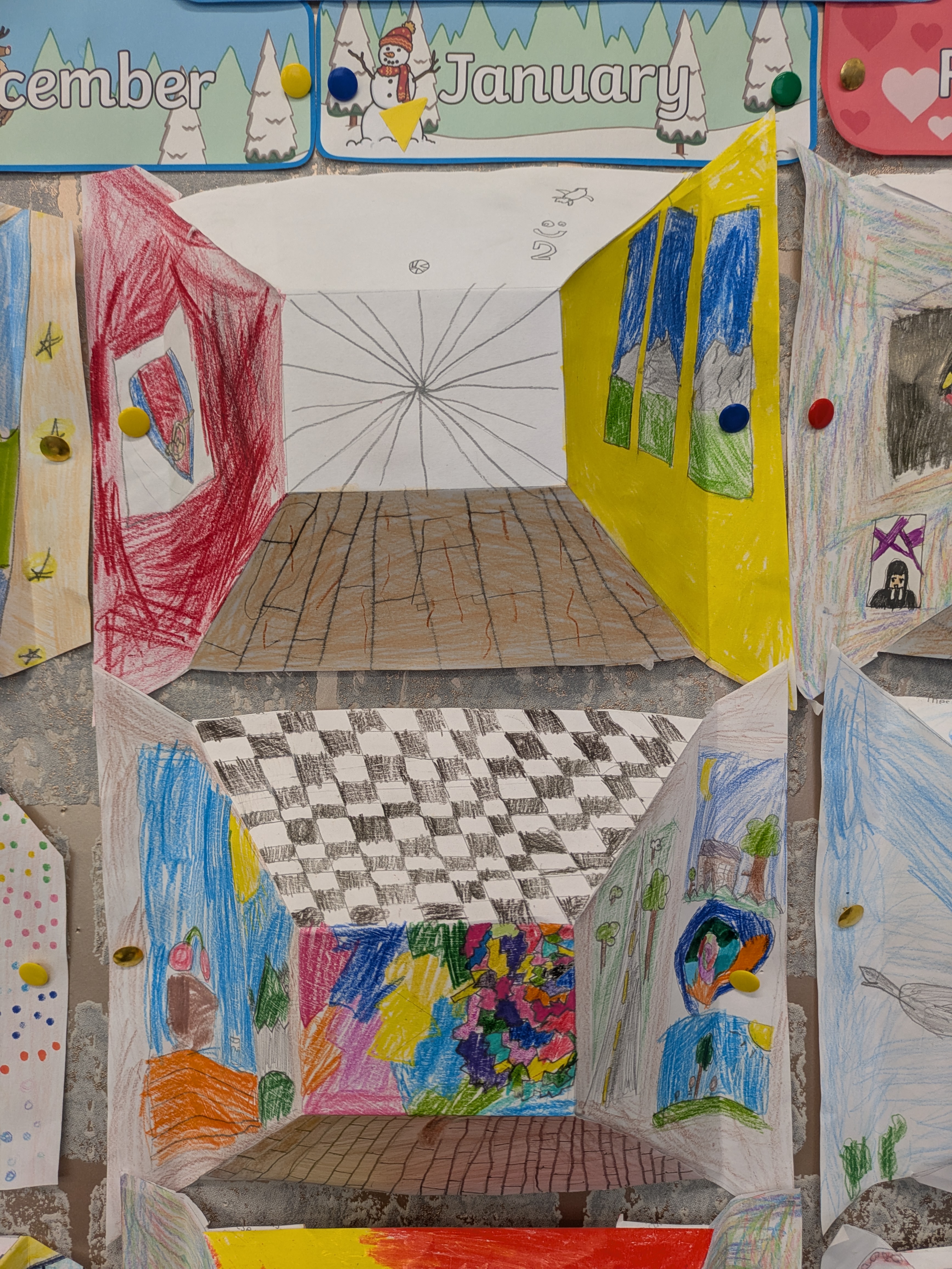 First class have been working on adding perspective into their artwork. They created 3D rooms and perspective landscape.