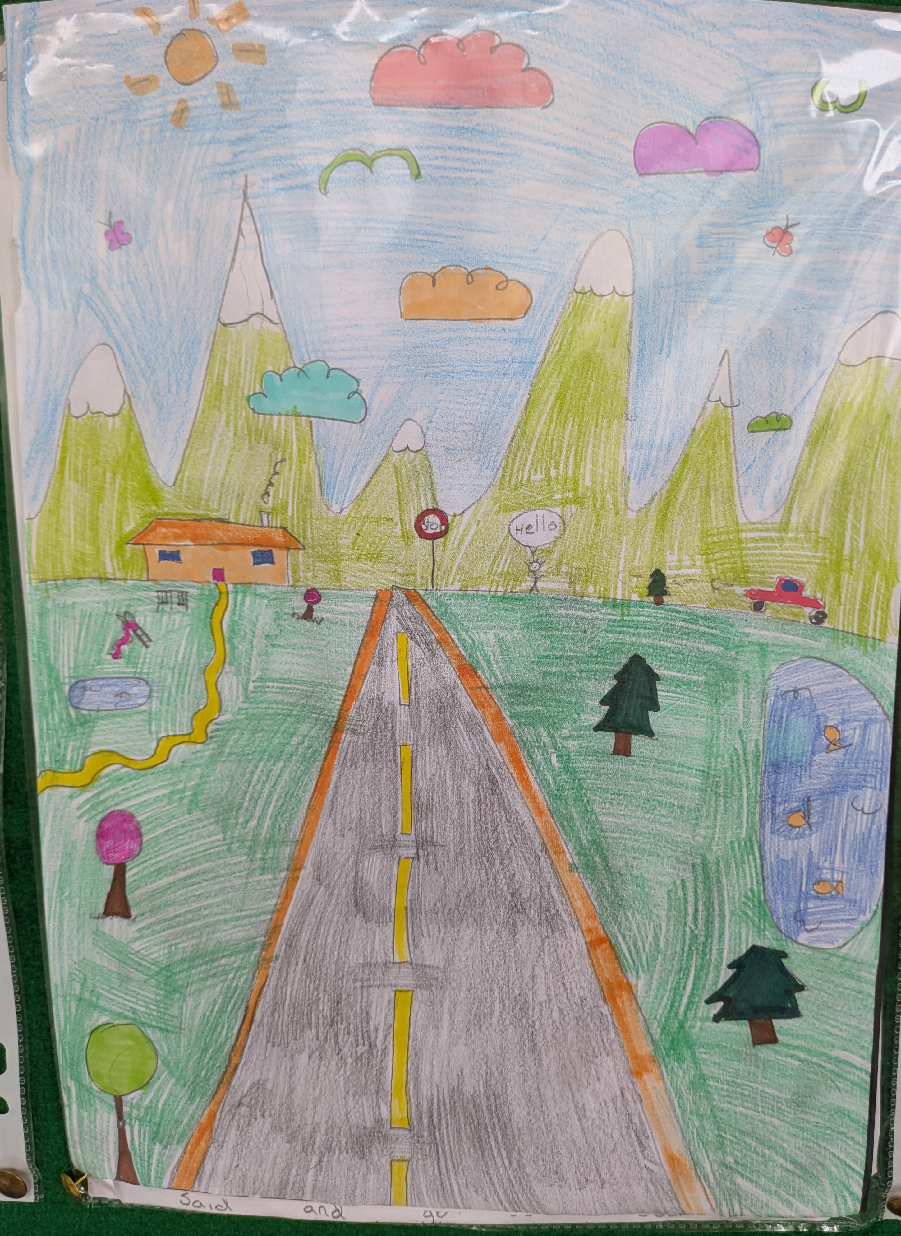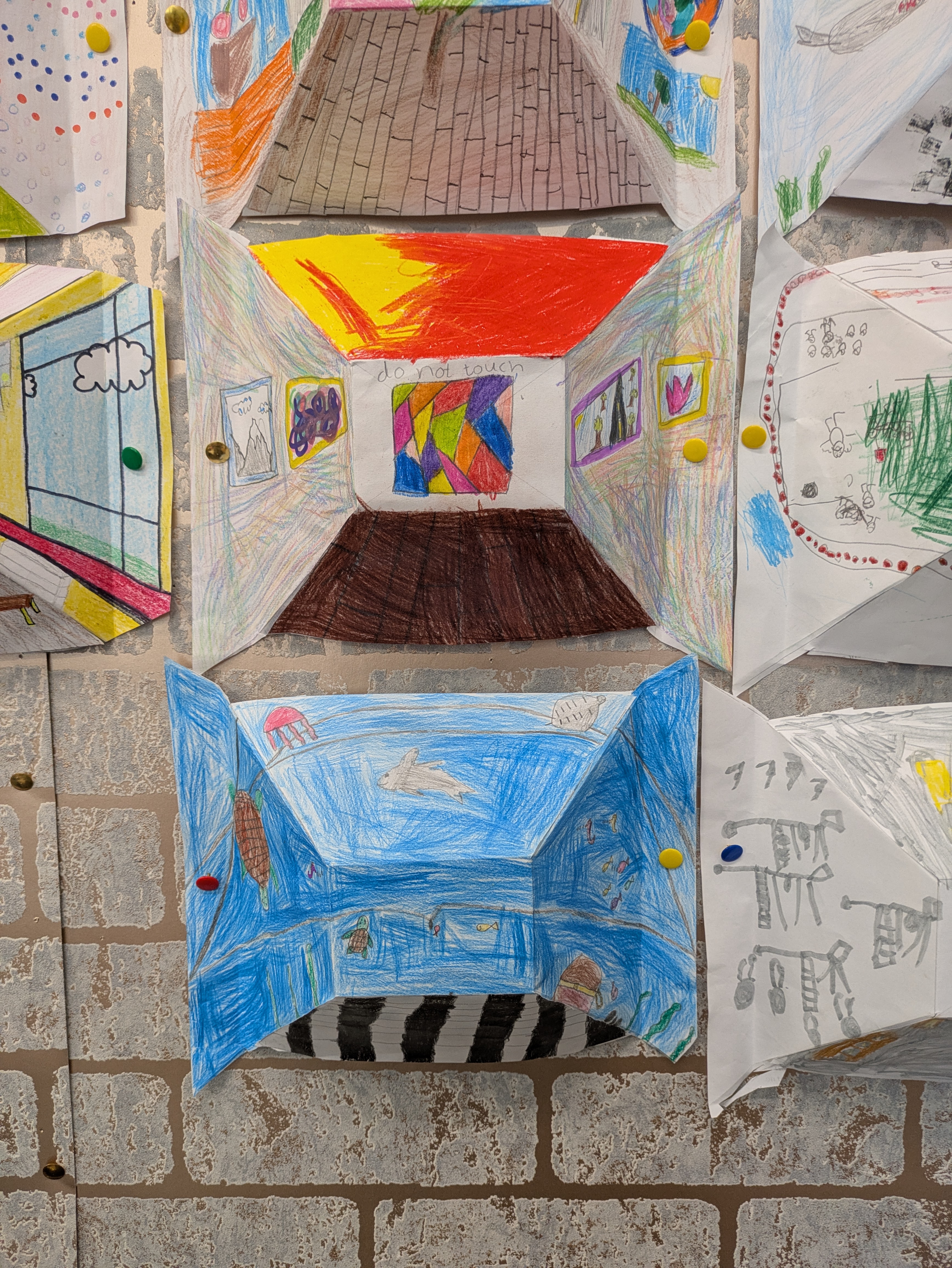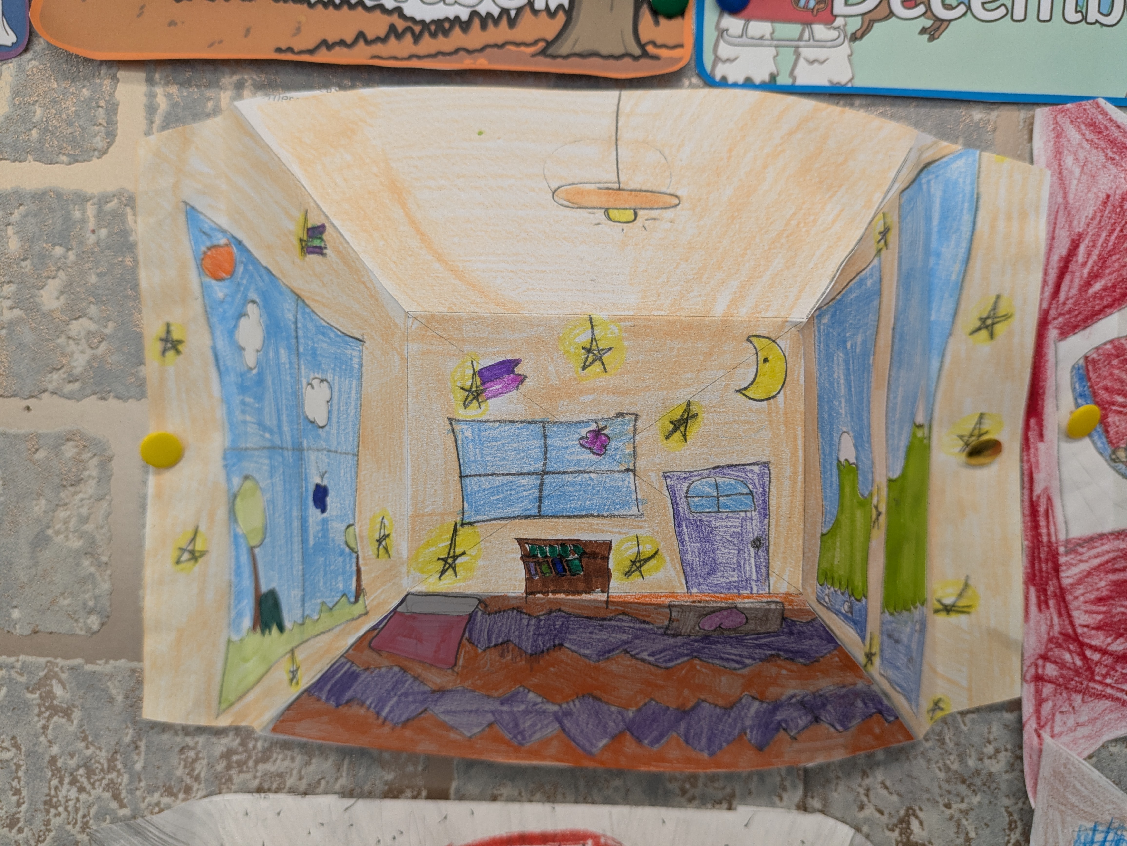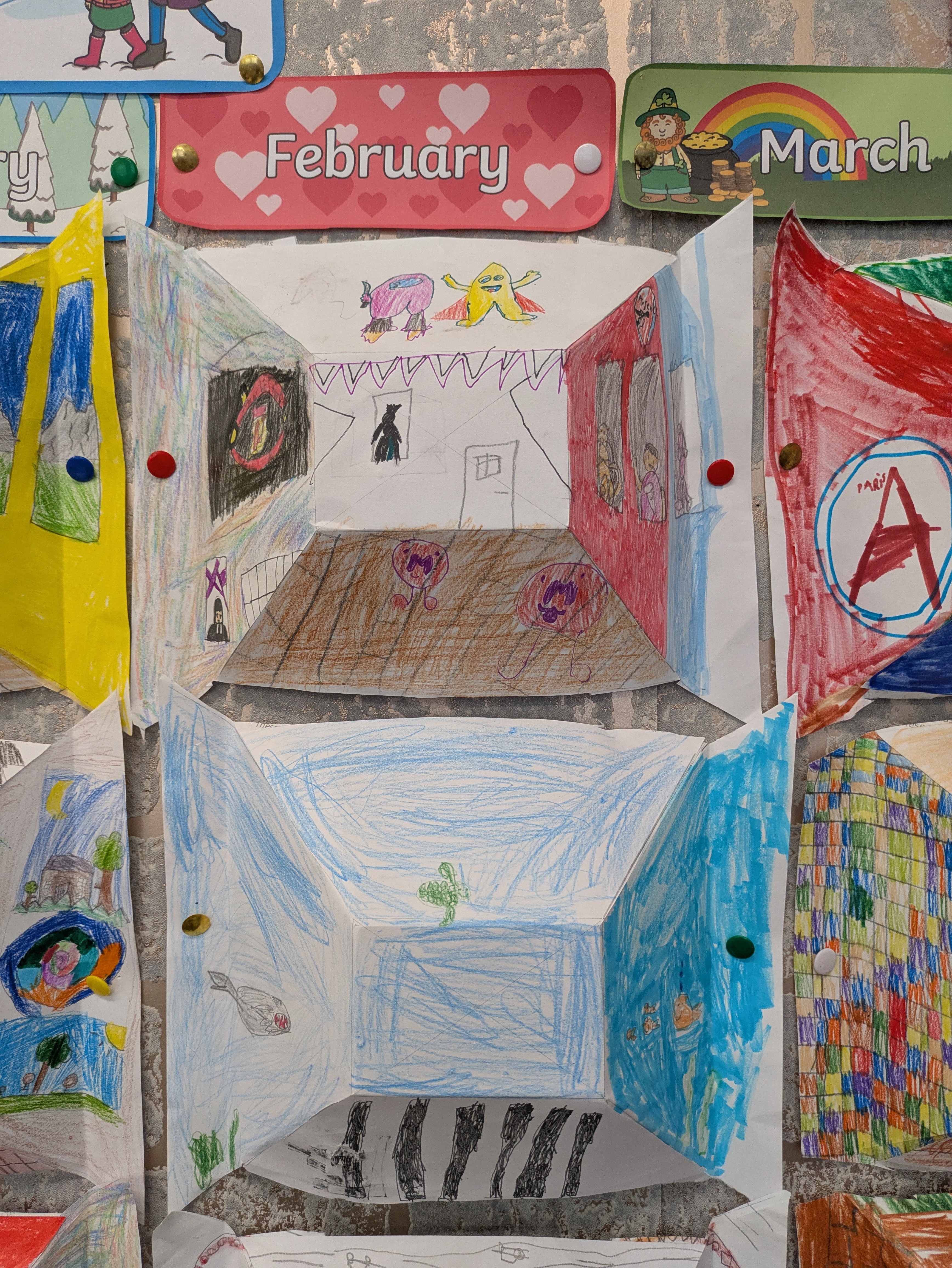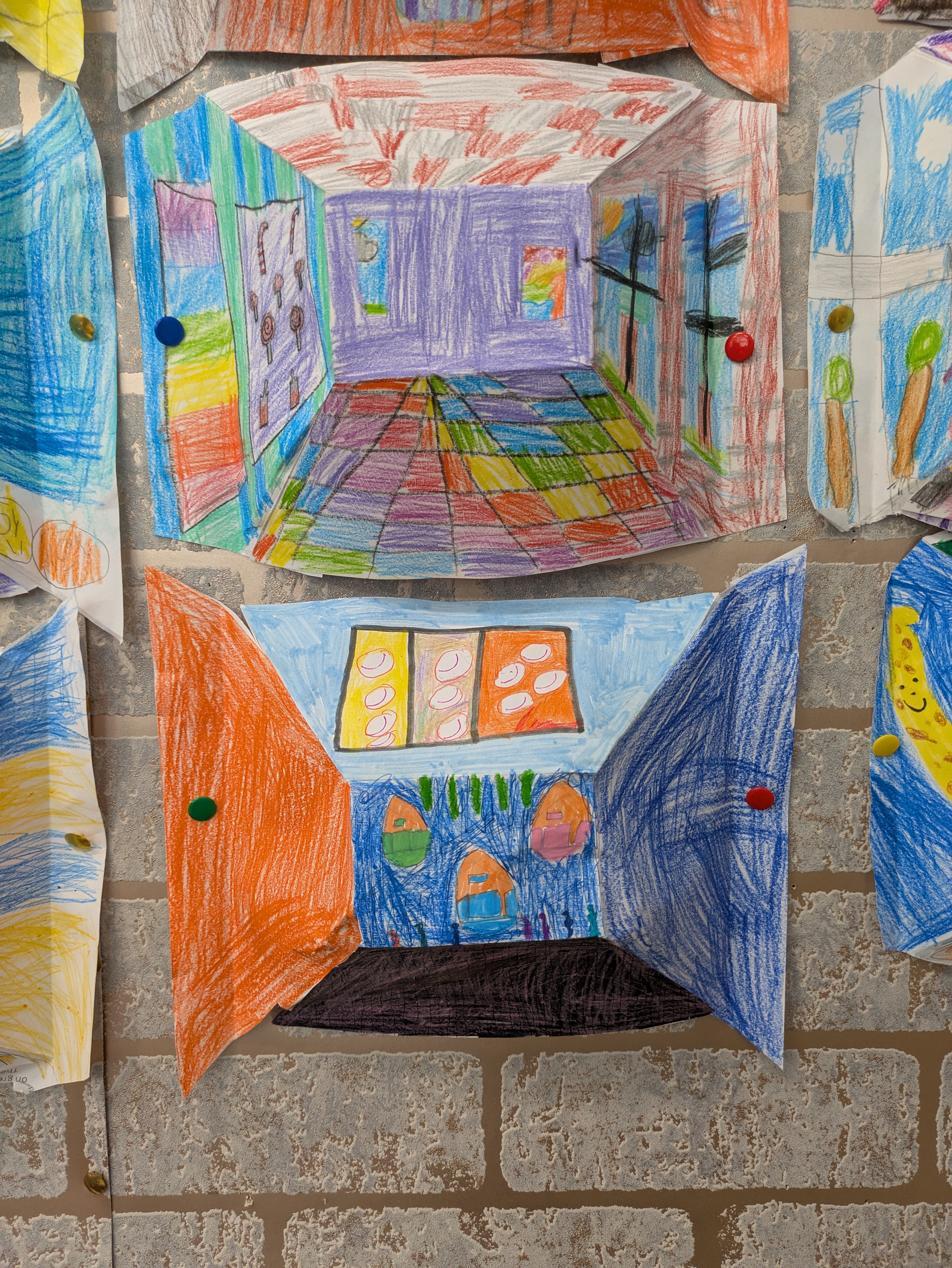 First class have been working on adding perspective into their artwork. They created 3D rooms and perspective landscape.