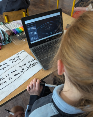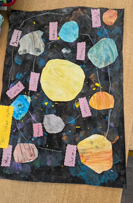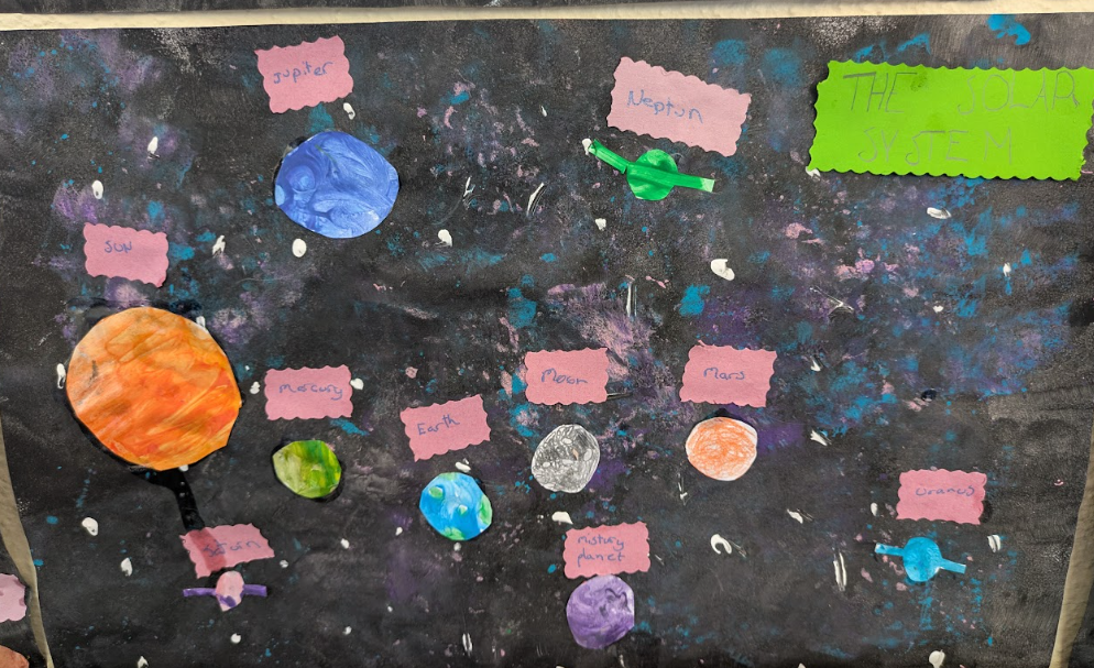 First class have been learning all about the solar system. They created books, posters and artwork to show all that they learned about each planet. They used the chrome books to do their own research by exploring the NASA space map. They drove a mars rover using their coding skills.